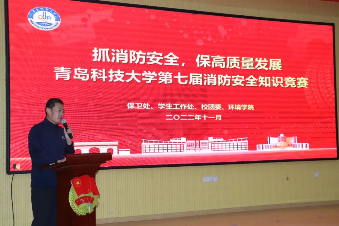 为了增强青年学生的消防安全意识,普及消防安全知识,夯实建设平安校园基础,11月29日晚,由党委学生工作部、校团委、学校保卫处、环境学院举办的“抓消防安全,保高质量发展”第七届大学生消防安全知识竞赛在四方校区尚舜报告厅举行。党委学生工作部副部长宋飞、校团委副书记陈兵、保卫处副处长严增兴、环境学院副院长张峰出席活动。