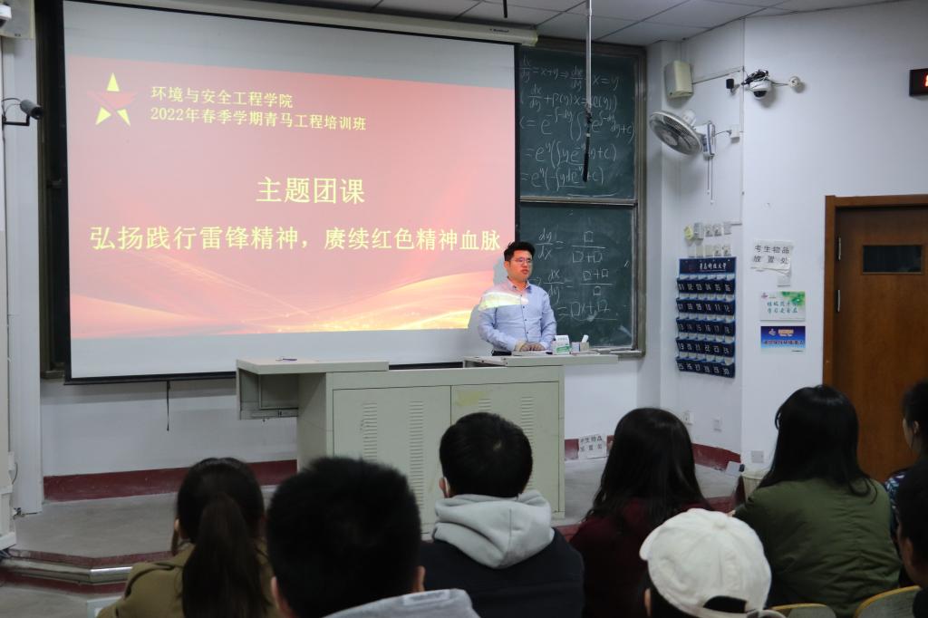 为弘扬雷锋精神,引导同学们树立良好的价值观,同时部署新学期的重点工作,强化责任担当,3月4日晚,环境学院于二教217举办青马工程培训班暨“弘扬践行雷锋精神,赓续红色精神血脉”主题教育团课。活动由学院学工办主任兼团委书记钟硕老师主持。