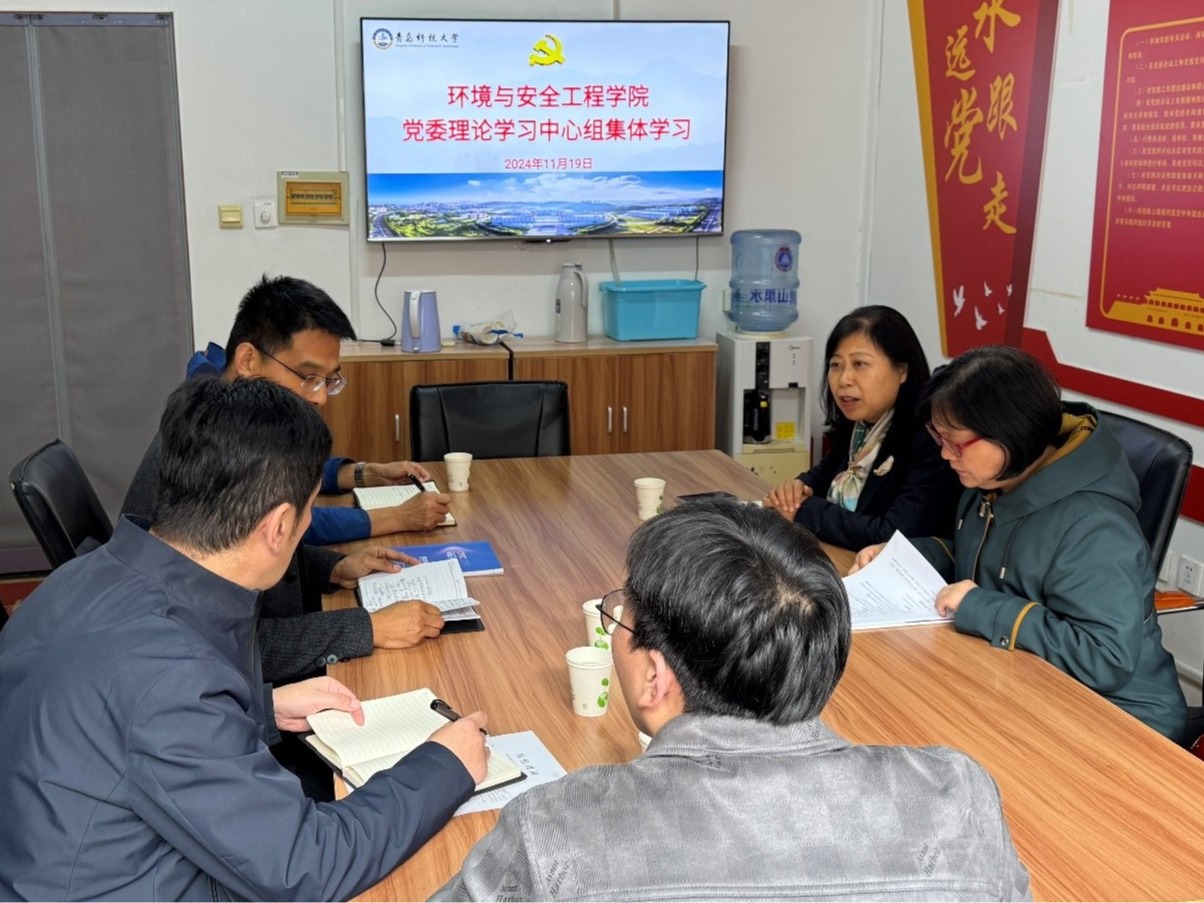 11月19日下午,环境学院党委理论学习中心组在3003会议室开展第十次集体学习,学习围绕习近平总书记对党纪学习教育做出的重要指示和中央党的建设工作领导小组会议精神、习近平关于安全生产重要论述摘编、习近平对社会工作作出重要指示等内容进行。党委书记王青主持学习。
