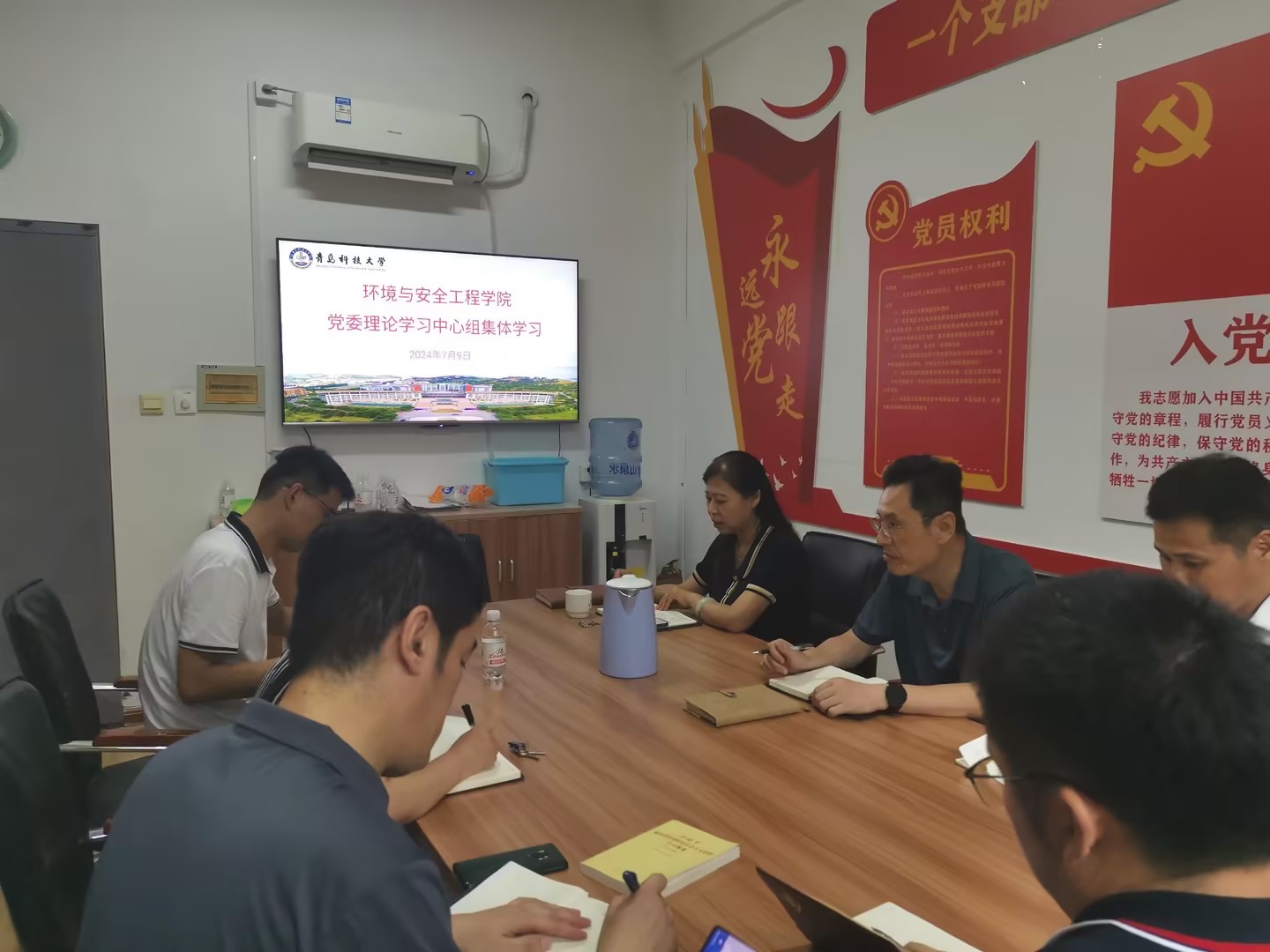 7月9日下午,环境学院党委理论学习中心组在3003会议室开展集体学习。会议聚焦全面从严治党、新时代新征程中国共产党的使命任务以及宗教工作等内容,党委书记王青主持学习。