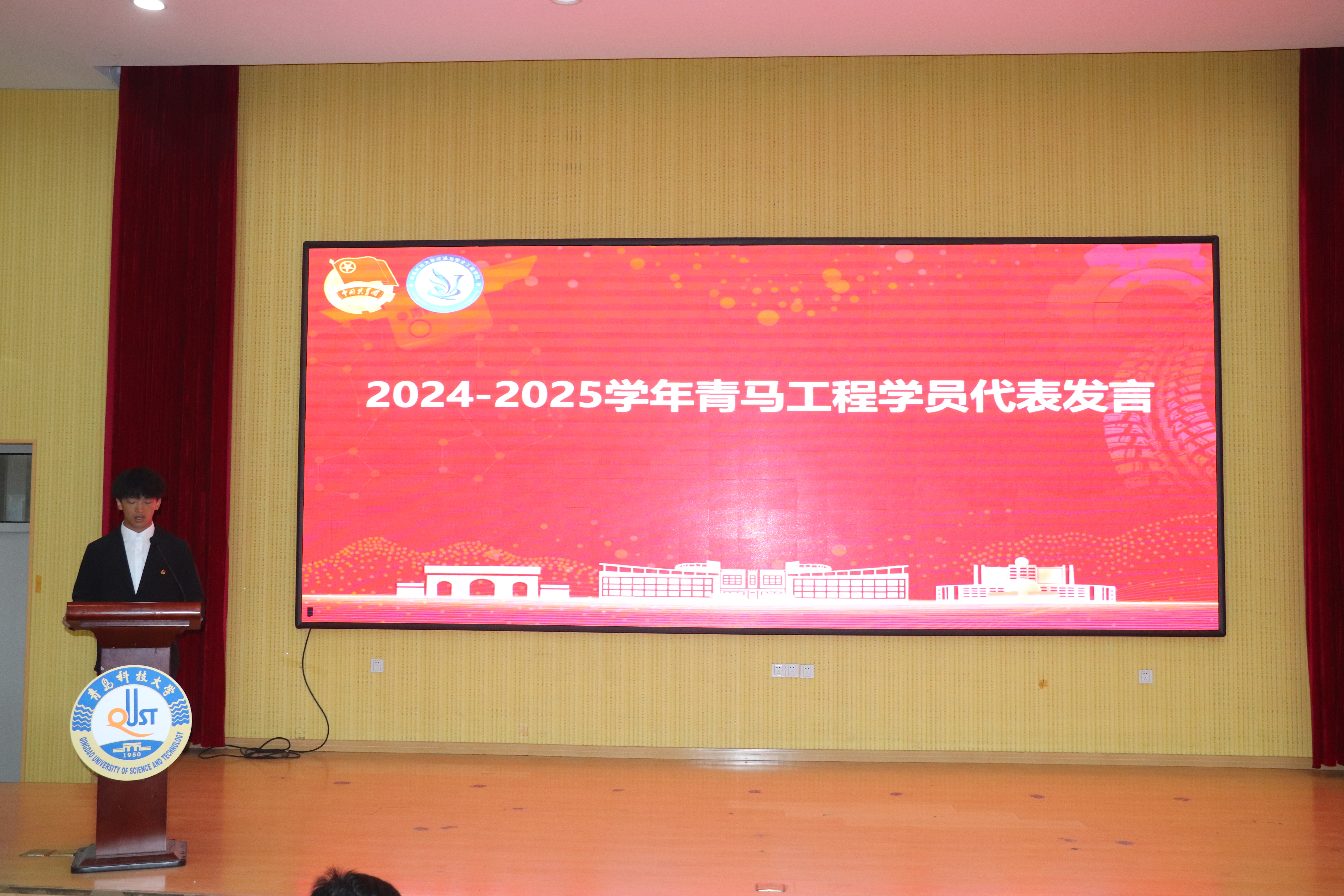 2024-2025学年青马工程学员代表王子浩同学发言,号召同学们在理论学习上悟真理,在志愿实践中长才干,在创新探索中求突破,争做新时代合格的青年马克思主义者。