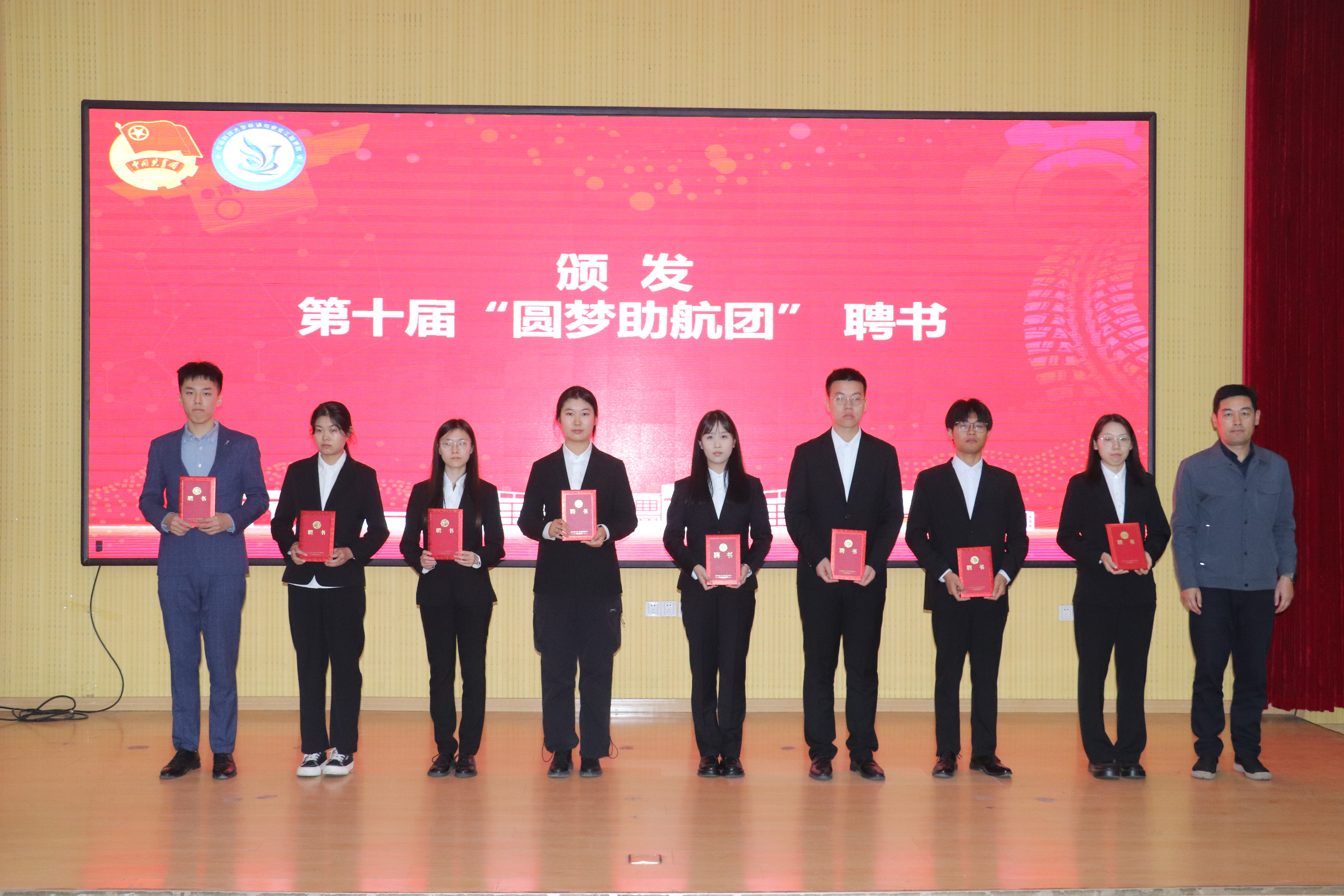 臧传永为第十届“圆梦助航团”成员颁发聘书。