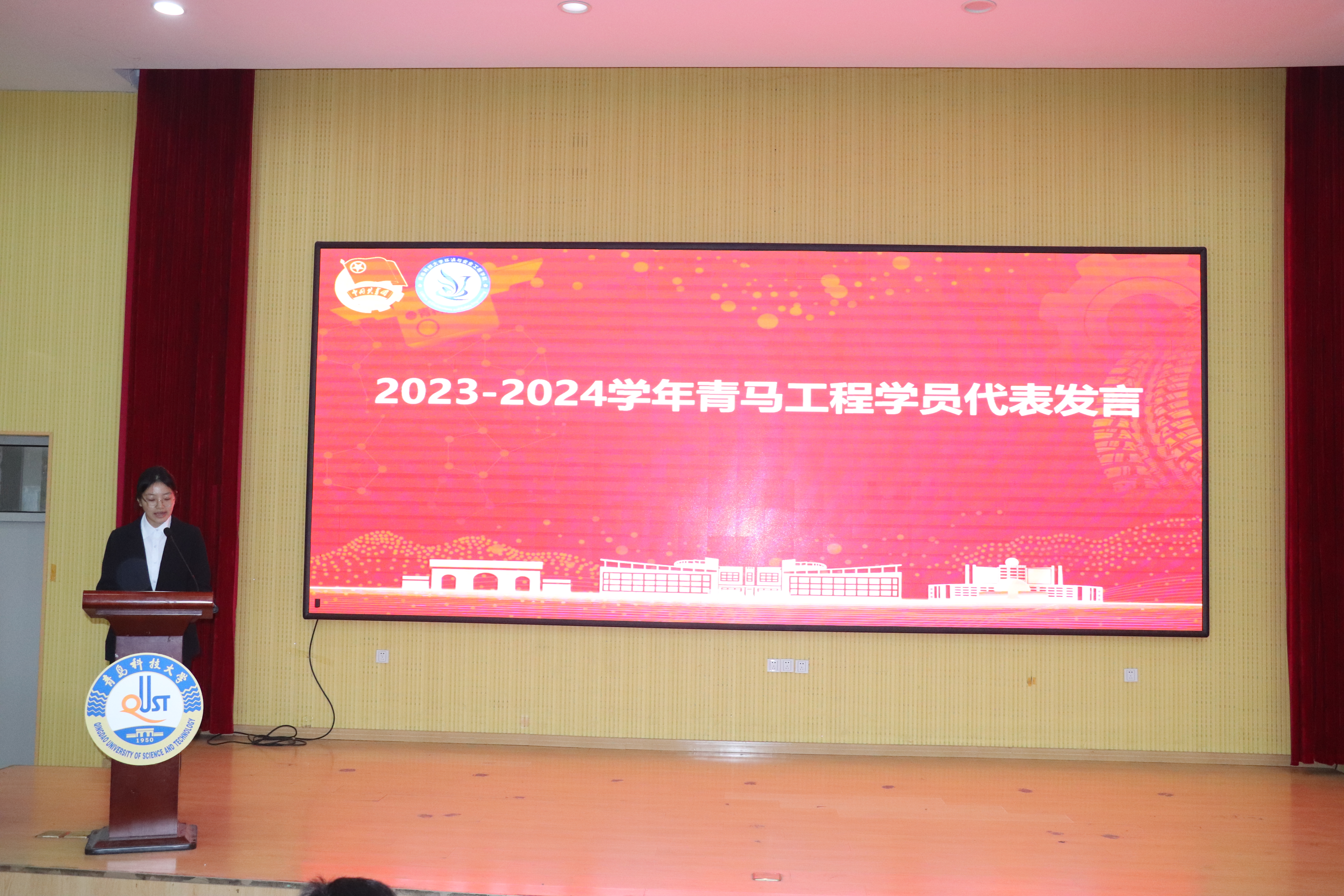 2023-2024学年青马工程学员代表刘田宇发言,她表示要坚定不移听党话、跟党走,成为有素养、有情怀、有能力的新时代好青年,让青春在全面建设社会主义现代化国家新征程中绽放绚丽之花。