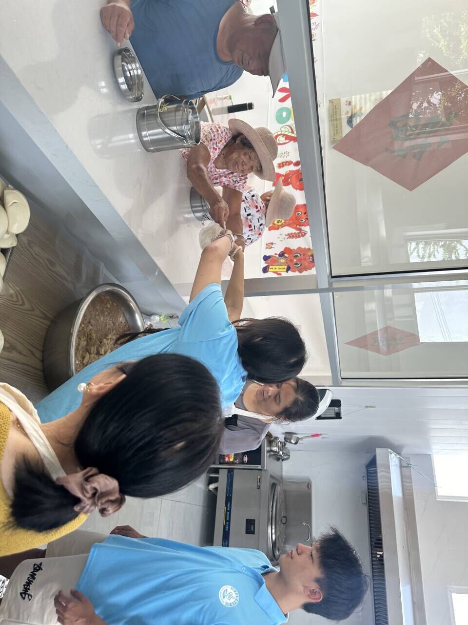团队成员秉持着“老吾老以及人之老”的思想,前往中王珠村老年食堂,帮助老人打饭,与社区共同守护老年人“舌尖上的幸福”。老年食堂不仅解决了孤寡老人“就餐难”的问题,也为老年人提供了一个“闲话家常”的公共空间