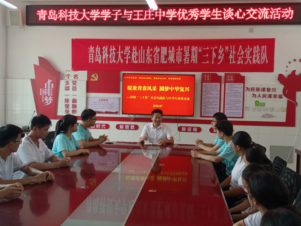 同时,应学校之邀,成员们与学校新升九年级的优秀学生开展以“绽放青春风采,圆梦中华复兴”为主题的交流活动。实践团成员分享了自己的学习经验与方法,为学生在学习和生活中遇到的困惑提供解答与指导,帮助他们调整心态,将压力转化为前进的动力,并学会正确面对各种挑战与困难。通过此次交流,同学们更加明确了前进的方向,凝聚起奋进的力量,以积极乐观的心态备战中考。