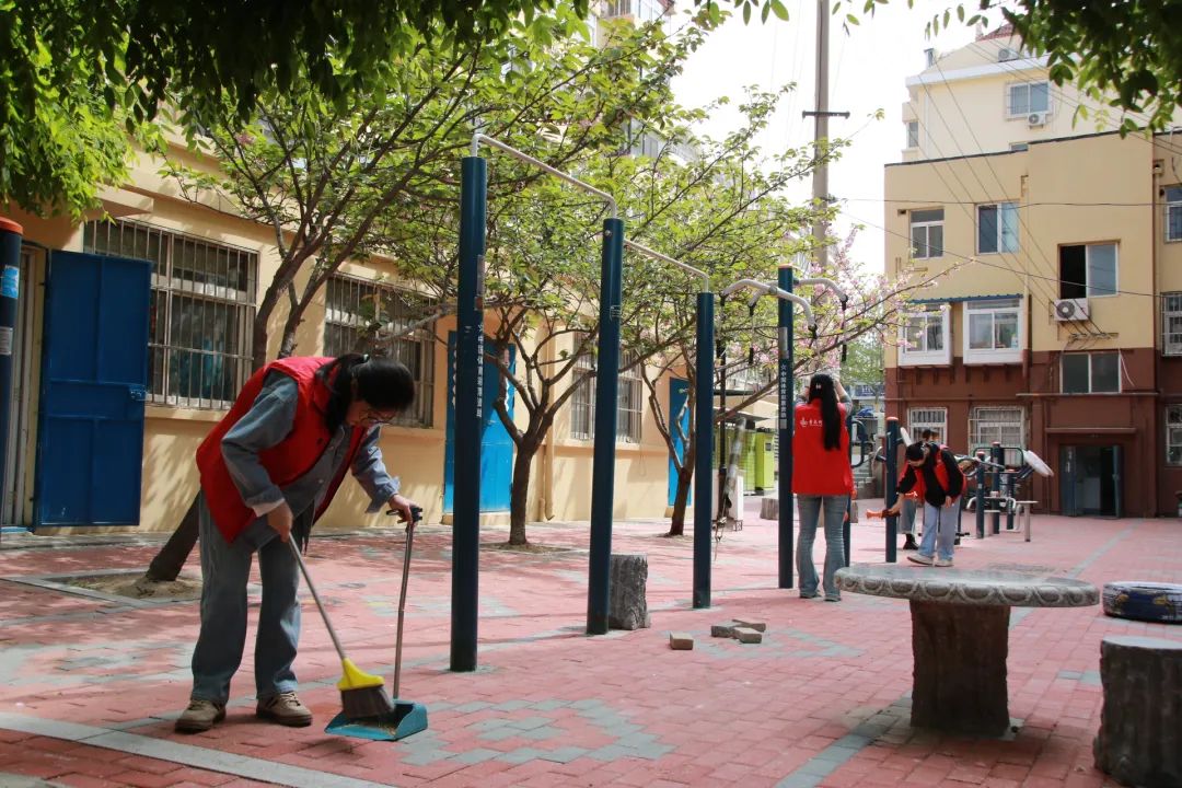 为践行志愿精神,营造崇尚劳动的浓厚氛围,学院青年志愿者协会组织志愿者前往市北区阜阳路社区进行卫生清扫活动。活动中,志愿者们身穿红色马甲,手拿扫帚、抹布等卫生工具,对社区马路垃圾、断枝枯叶、石块等杂物进行清理,将社区中公共娱乐设施擦拭干净,不放过任何一个盲点,努力为社区群众营造一个干净、整洁、和谐、有序的环境。
