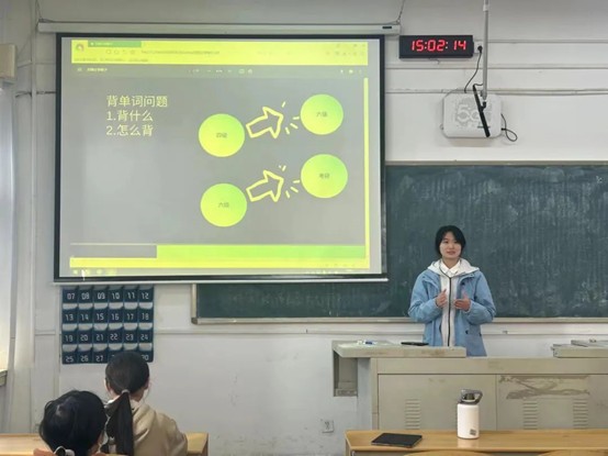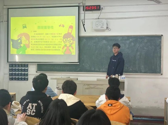 本次活动面向2023级同学展开,由四六级成绩优异的2021级、2022级同学进行经验分享。分享者主要针对学习资料、学习软件、学习计划等方面进行分享交流,强调要通过日常积累来锻炼听、说、读、写的能力,并对同学们提出的问题进行了答疑解惑,给予同学们一些自主学习备考的建议。