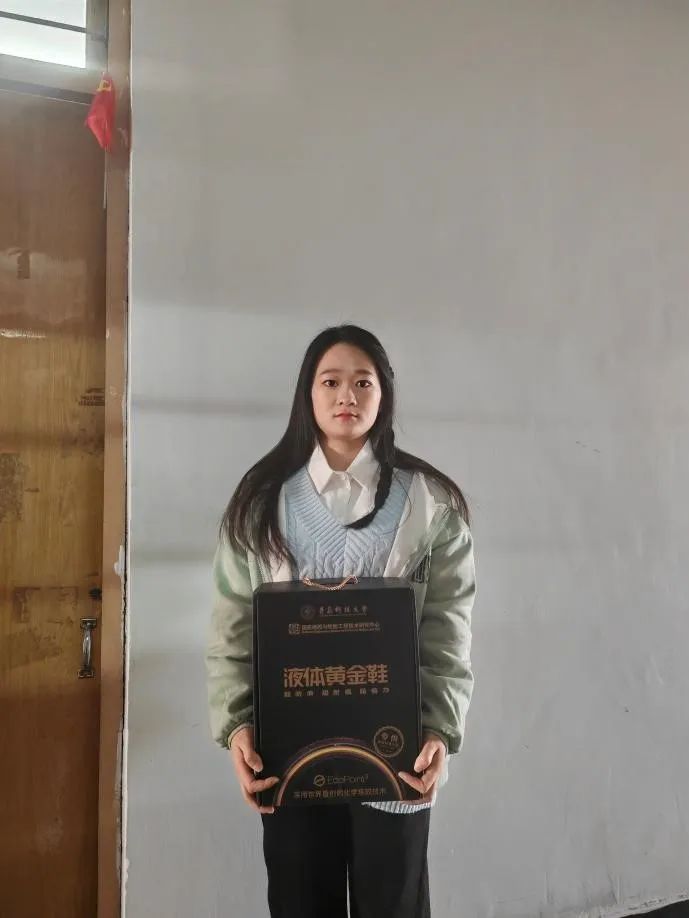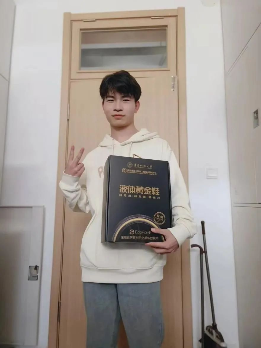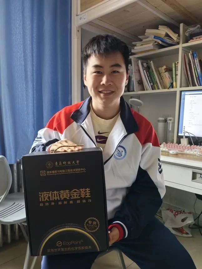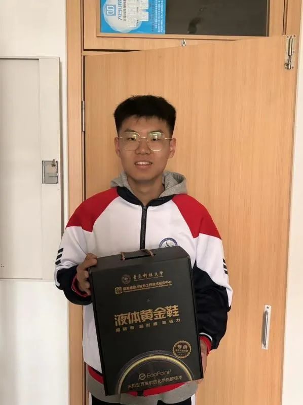 领到液体黄金鞋以后,我感到十分开心自豪,这不仅是学校和国橡中心对我们的关怀,也是学校产教融合、科技成果转化的最新成果,对于我们来说,这份礼物不仅是一份实物馈赠,更是一份激励和鼓舞,坚定了我们追求科技创新、服务社会的信念。
