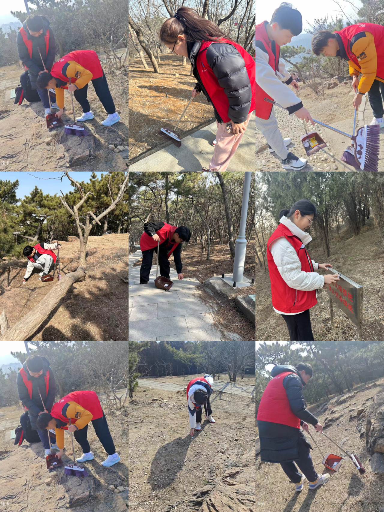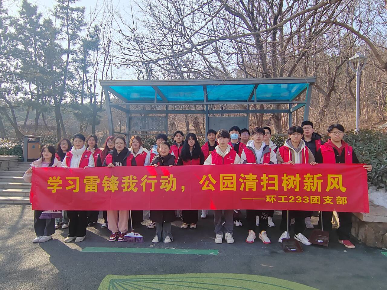 以学导行。开展“学习雷锋我行动,公园清扫树新风”志愿服务卫生清扫活动。环工233团支部与青年志愿者协会结合社区垃圾分类日常工作,深入社区和北岭山公园进行环境卫生整治,将雷锋精神融入日常生活与工作中,用实际行动践行与弘扬好雷锋精神。