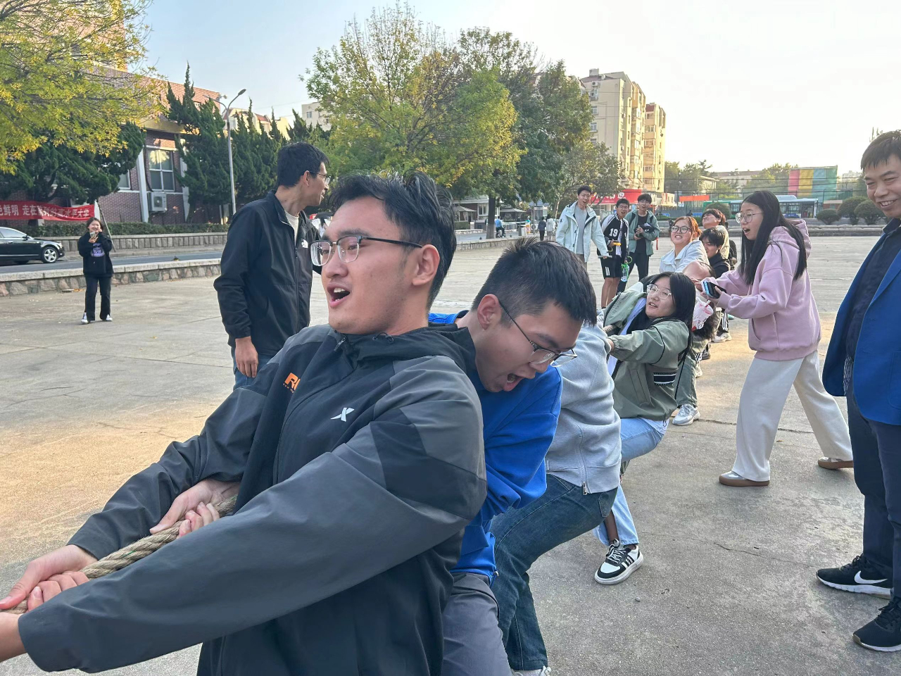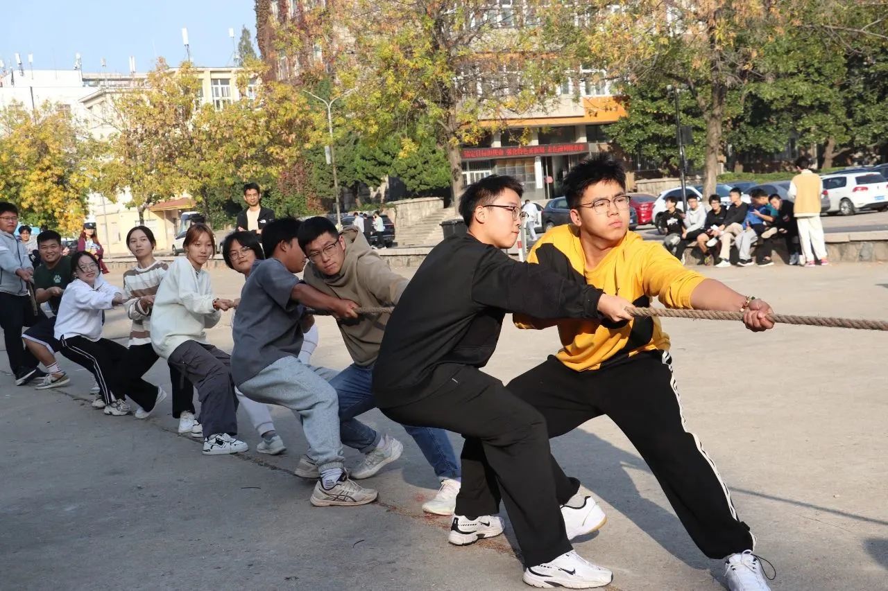 此次活动通过线上线下多渠道、多形式、多元化进行。活动第一项为“情暖秋日聚人心·师生齐力展风采”拔河比赛以及“默契大挑战”师生夹球跑,学院党政领导,2022级和2023级全体班主任、学工办全体辅导员及2022级、2023级各班级同学代表参加此次活动。活动现场气氛热烈,参赛师生铆足劲头奋力角逐,观看师生热情高涨呐喊助威,参与师生团结一致、咬紧牙关不肯放弃的精神风貌,展现出环境学院师生的顽强韧性与坚强的意志力,有力提升了师生参与度与互动感,促进师生感情升温。