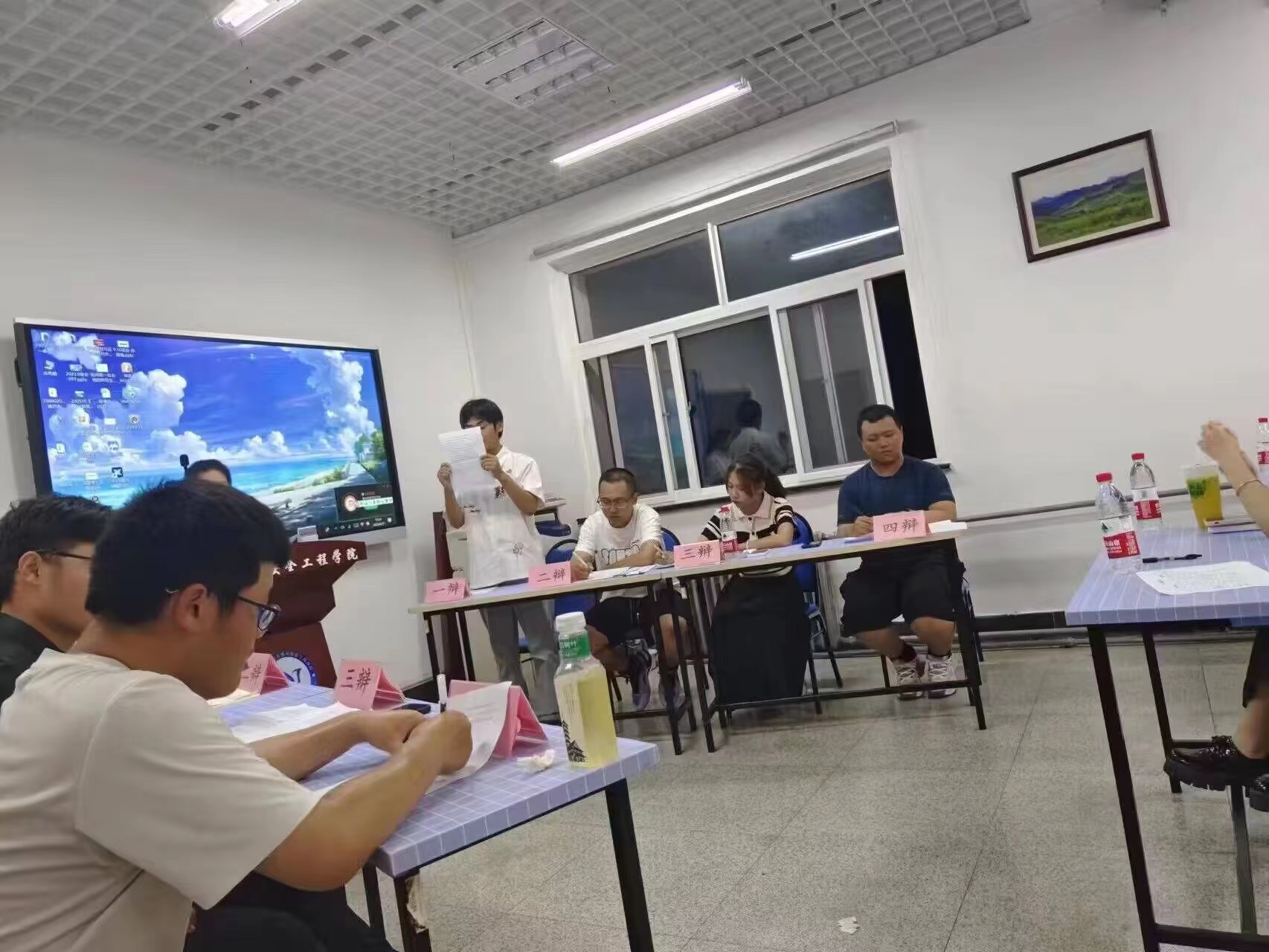 为锻炼2023级新生的辩论能力和合作能力、丰富同学们的业余生活、展现环境学子的精神风貌,9月17日晚,环境学院于学院楼3015举行迎新杯辩论赛初赛,第一场对战双方为安全231班和安全232,第二场为环境231班和环境232班以及环境222班和环境233班,第三场为环工231班和环工234班以及环工232班和环工233班。