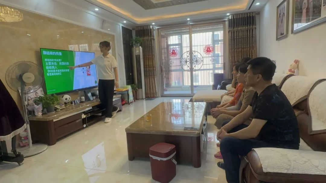 志愿服务进家庭。为切实做好走进家庭肺结核防治宣传工作,积极营造全社会共同参与肺结核防治的良好氛围,团队成员向各家庭成员开展了防治肺结核宣讲活动,团队成员从结核病的传播、预防、措施等方面向各位家庭成员进行了详细讲解,倡导大家正确认识结核病,积极做好防御工作,创建幸福家庭。