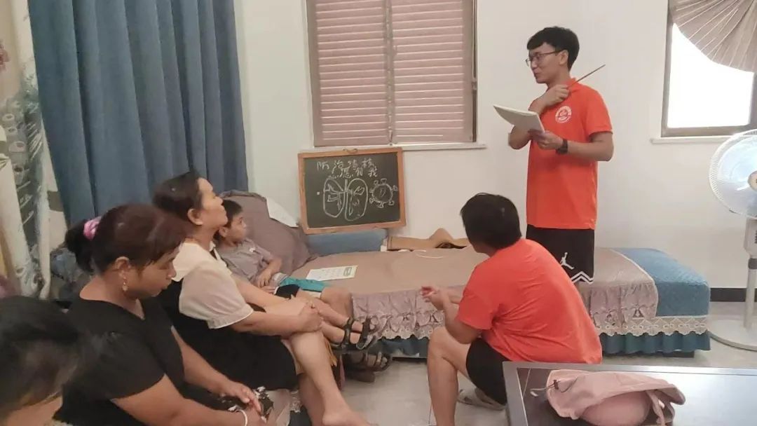 志愿服务进学校。7月中旬,团队成员前往昕墨教育,为当地小学生讲解了结核病防治相关知识。团队将宣讲重点定位于引导小学生养成良好的生活习惯和运动习惯,以小学生出生时接种的卡介苗为切入点,增加了小学生对肺结核的了解。