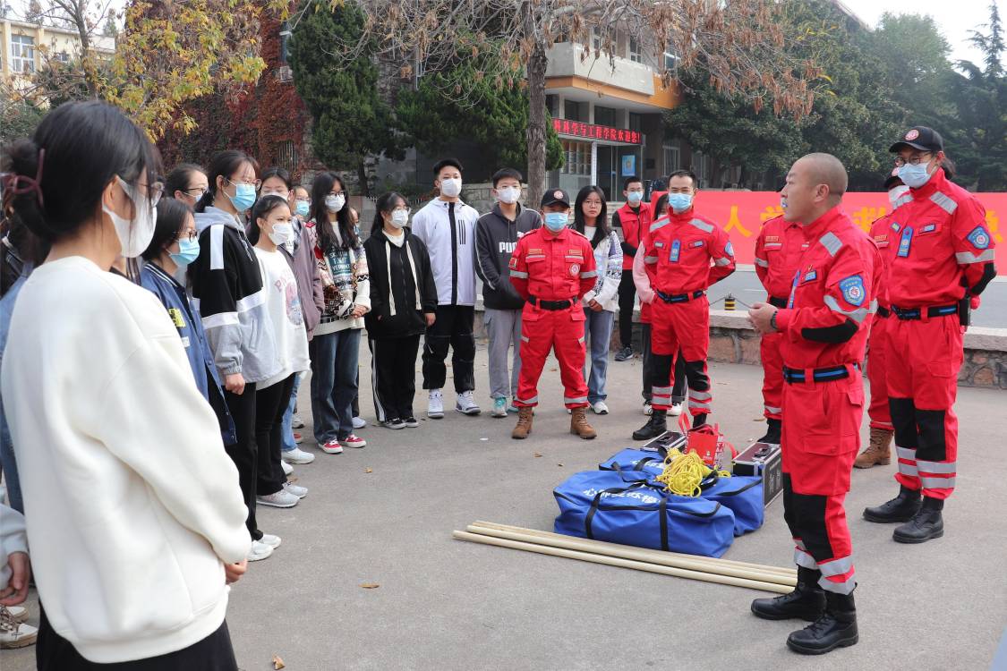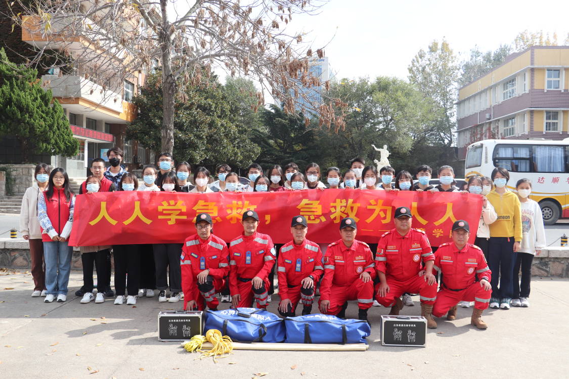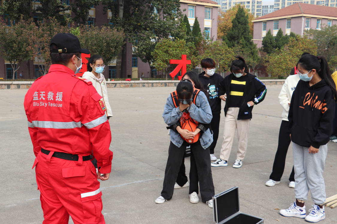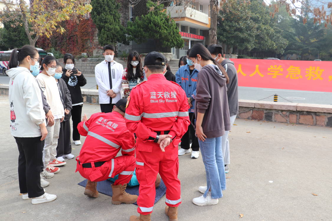 培训会上,青岛市文化和旅游志愿者协会队员们向大家阐述了关于急救知识的重要性和科学性,强调大学生掌握日常急救本领的必要性。随后,参会学生在志愿者救援人员的指导下进行简单有效的技能培训,大家认真学习心肺复苏、海姆立克急救法、处理包扎处理伤口以及简易担架的制作等急救方法,并在互动体验中演习致用,氛围活跃。