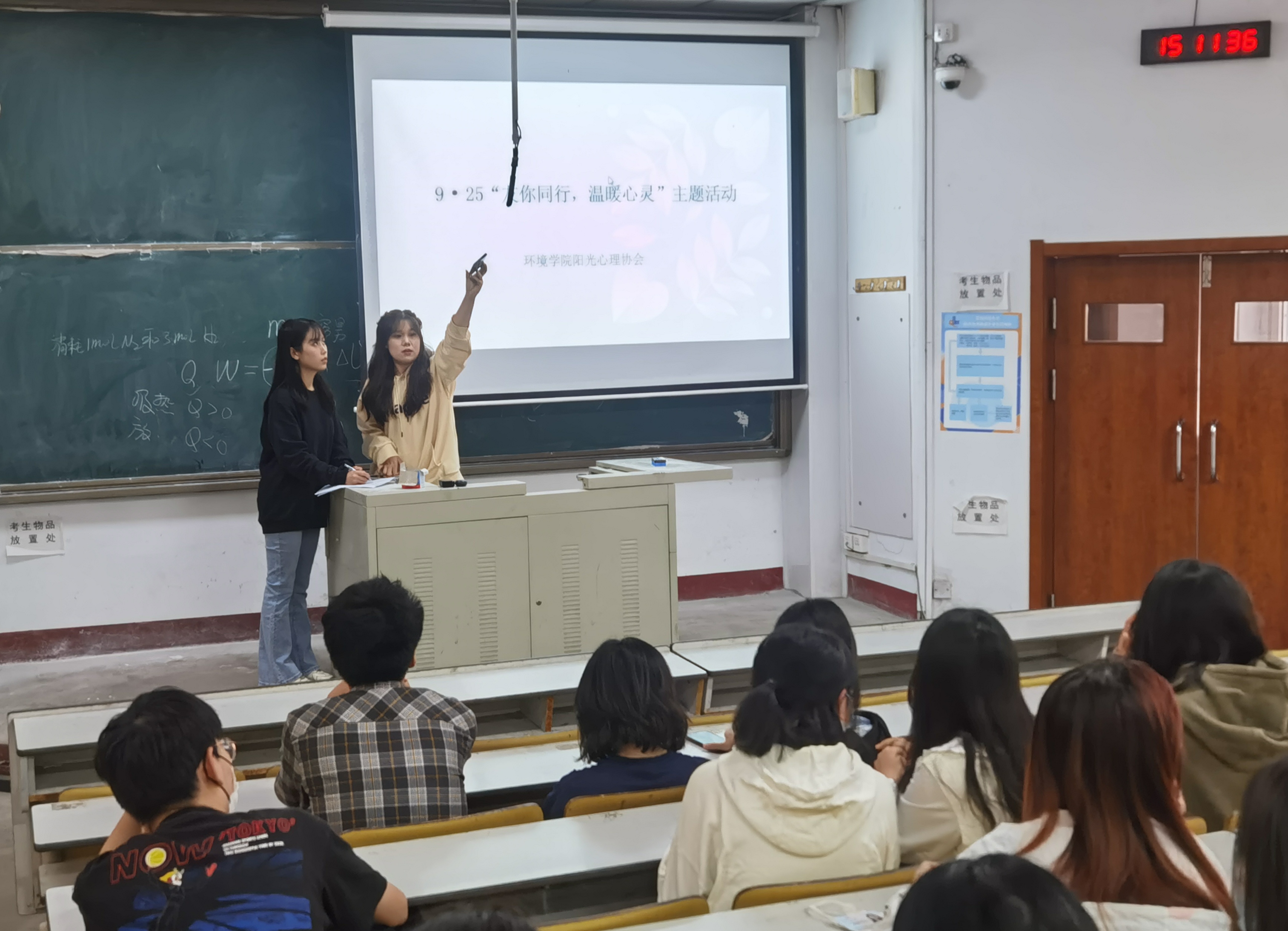 为进一步加强我院心理健康教育工作,全面提高大学生心理健康素质,营造有利于大学生身心健康和谐发展的校园氛围,10月9日下午,环境学院阳光心理协会于2教115举办了世界精神卫生日及心理健康相关知识宣讲活动。