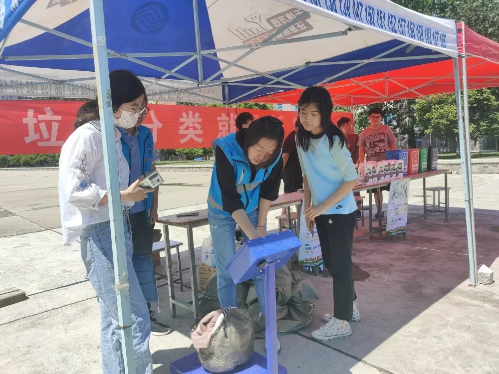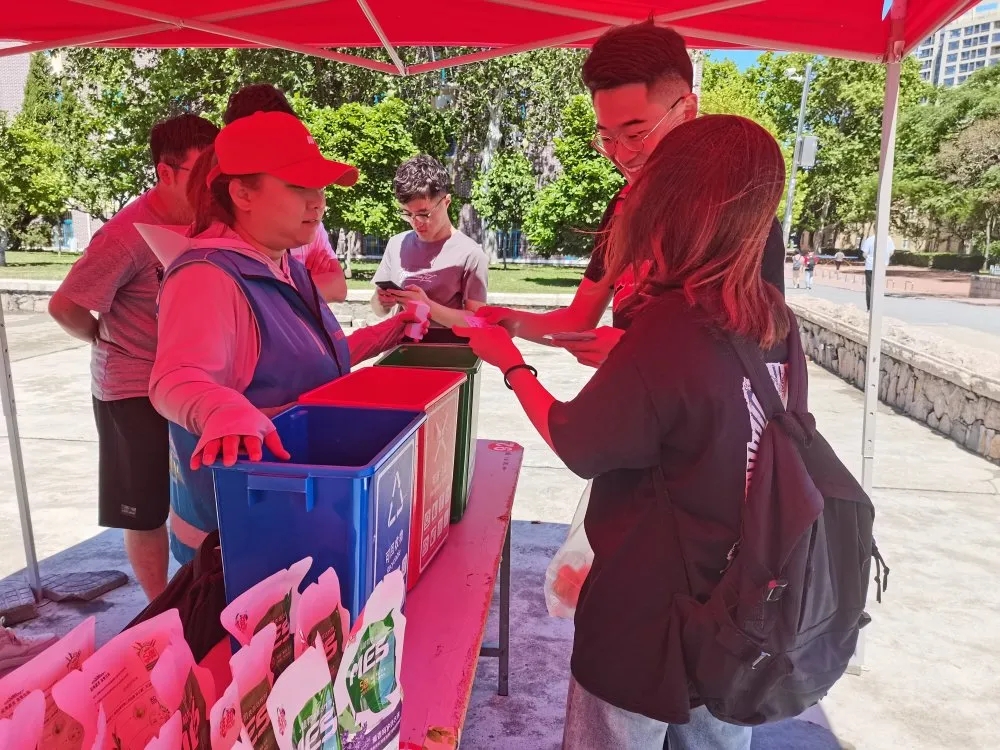 为了提高大学生的环保意识,6月15日,环境学院与青岛市市北区城管局联合开展旧衣回收与垃圾分类系列宣传活动。
