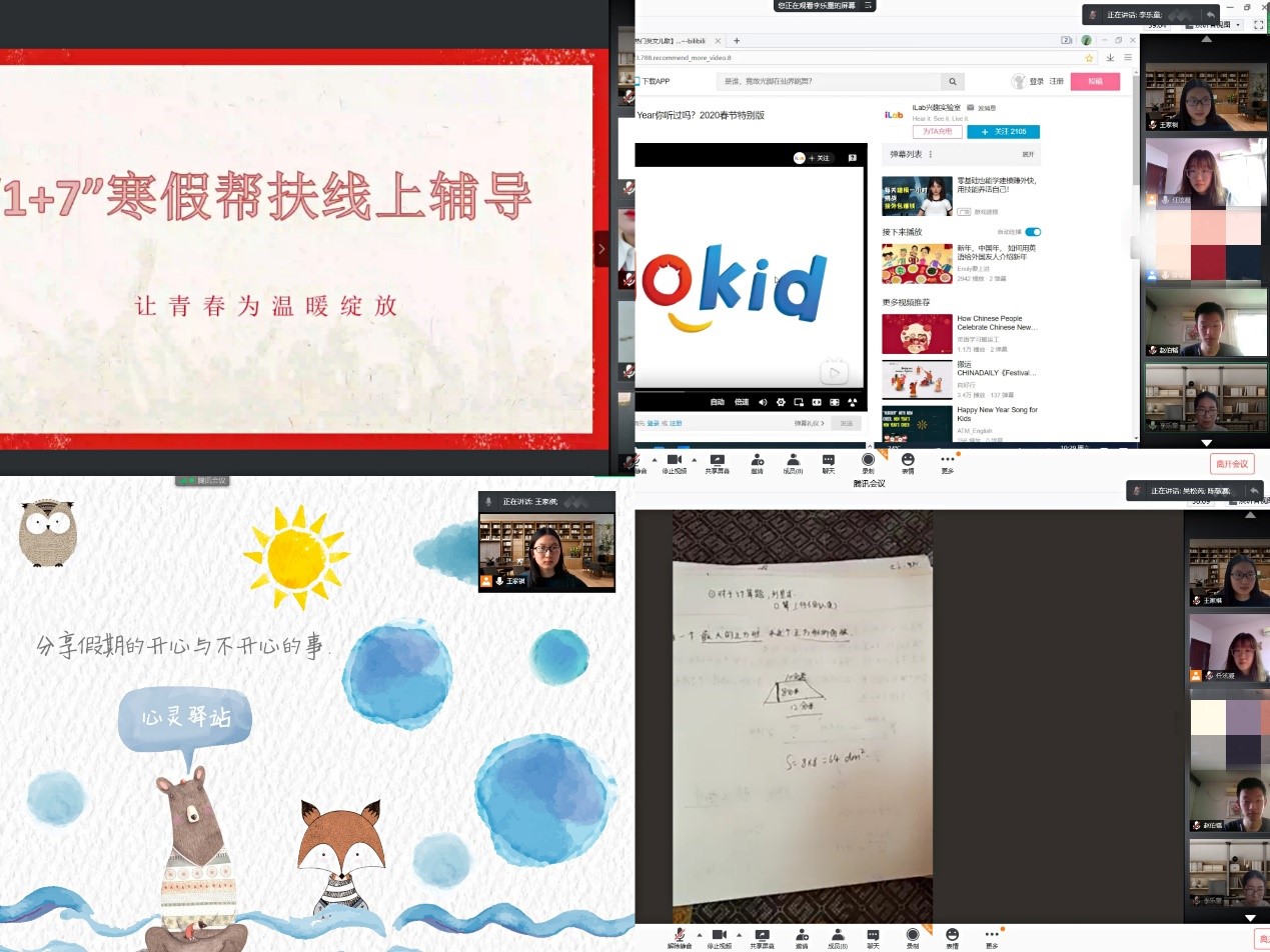 寒假期间,学院组织开展“1+7”寒假打卡计划,选派7名优秀志愿者每天和陈同学连线一次,分别从语文、数学、英语、心理、阅读、安全、法制等多方面对其进行针对性帮扶,帮助其培养自强自立、乐观向上的生活态度,增强其融入社会的能力,实现了“小屋焕新”到“精神焕新”的转变。自2020年11月6日以来,学院坚持组织学生每周五与陈同学进行视频连线,用长期的温暖陪伴,帮助其健康成长。