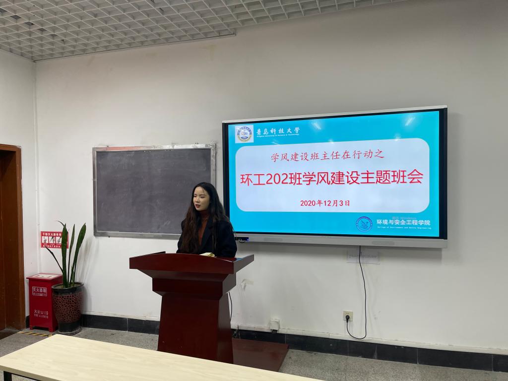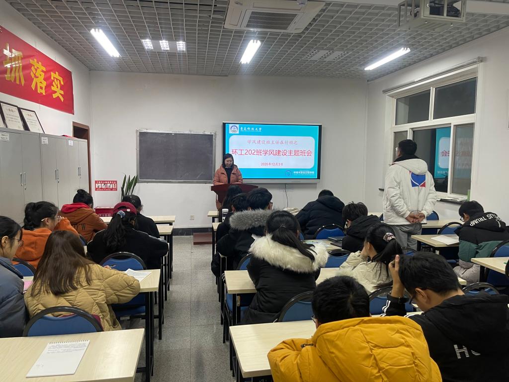 为加强学风建设,引导学生明确学习目标,端正学习态度,12月3日晚,环工202班召开学风建设主题班会。2020级辅导员兼环工202班班主任王冰洁老师及环工202班全体同学参加班会。