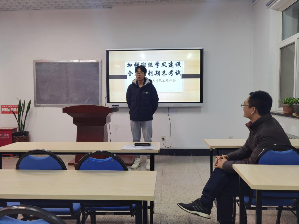 会上,党振华老师针对班级期中成绩进行了总结,分析了考试中出现的问题,并向同学们提出了合理的建议。他强调,班委应起带头作用,端正学习态度,树立良好榜样,为实现班级同学共同进步、创建一个优秀班集体而努力。同时对同学们提出了新的要求。他要求同学们对未来做好规划,将学习当成一种习惯,合理地利用自习时间,督促同学们努力学习、争创佳绩。此外,党振华老师特别强调了科技创新的重要性,鼓励同学们积极参加创新、创业等活动。