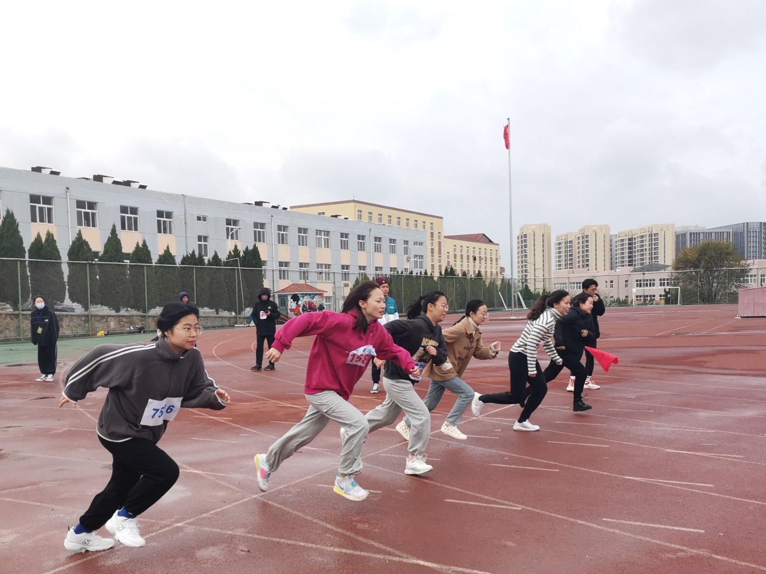比赛期间,运动员们不畏严寒,在激烈的赛场上奋力拼搏。百米跑道上掠过运动健儿风驰电掣的身影;铅球场地上,运动员们摩拳擦掌,不断调整掷球策略;跳远场上的每一次纵身一跃都伴随着超越自我的坚定信念。接力赛中,随着发令枪一响,运动员们如箭离弦,用接力棒传递着激情,跑道外不断传来观众的呐喊声与加油声,每一次冲刺都扣动着人们的心弦,青春的力量渲染了整个操场。最后,拔河比赛决赛将运动会推上了高潮,参赛队员个个肌肉紧绷,一齐后仰,使出浑身解数,加油声此起彼伏,赛场气氛一片欢腾。