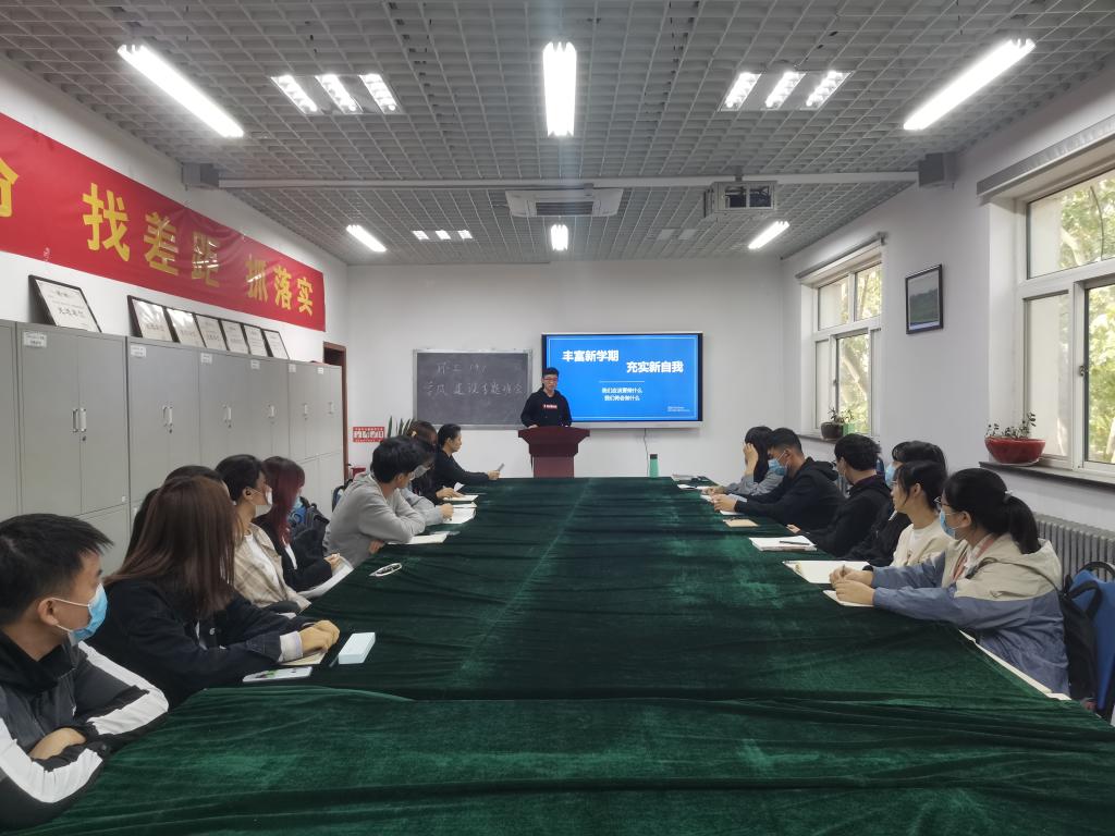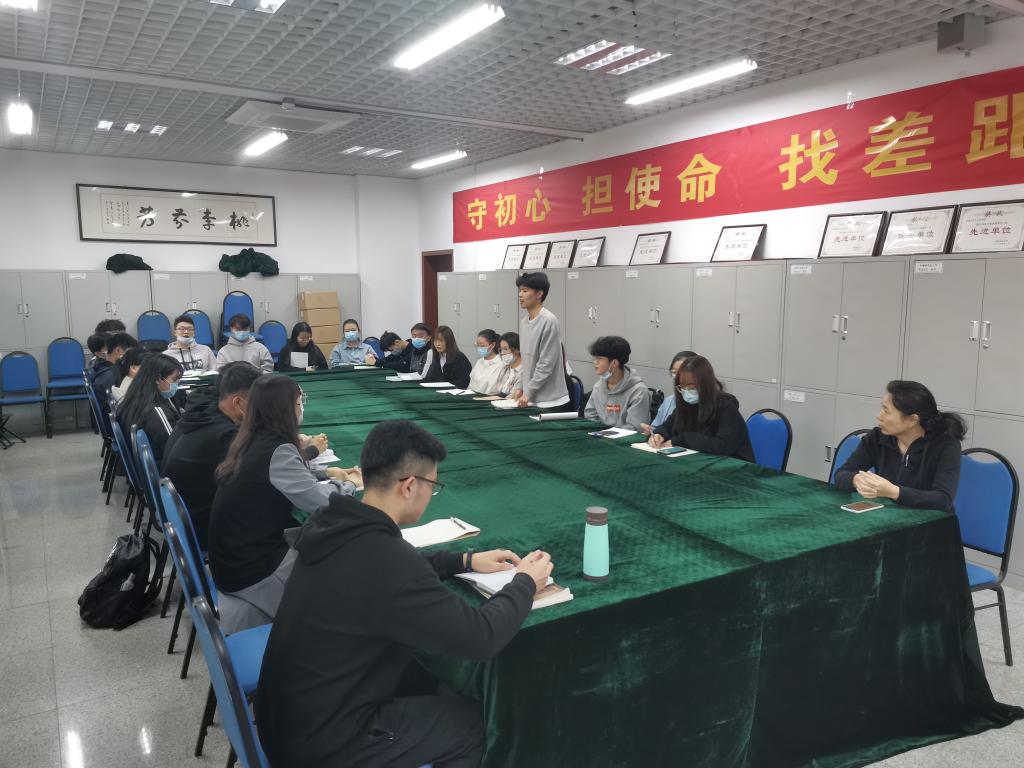 会议伊始,班长高元勋就上学期的成绩与大一第一学期进行对比,指出班级整体成绩下滑较为严重,与同专业其他班级也存在着不小的差距,鼓励同学们认真总结思考,在新的学期取得进步。