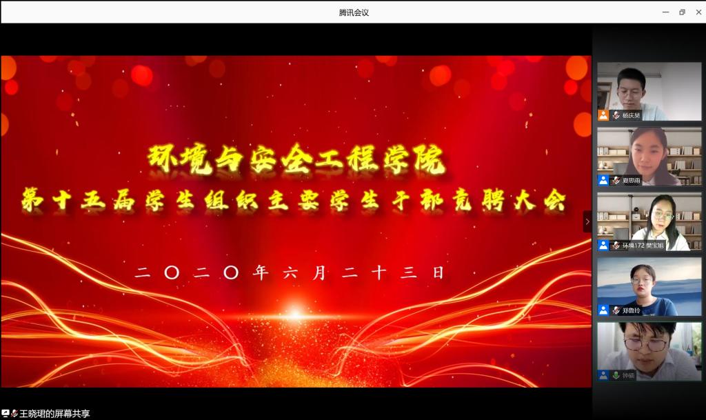 为贯彻落实上级关于学生组织改革的要求,推动学院学生组织的全面建设与发展,培养一批高素质、高水平的学生组织干部,6月23日至26日,环境学院举行第十五届学生组织干部选聘。本次选聘的学生组织包括学院学生会、社管委、新媒体中心、创新创业中心,面向学院2018级和2019级全体学生公开选聘,选聘依托腾讯会议线上举行。