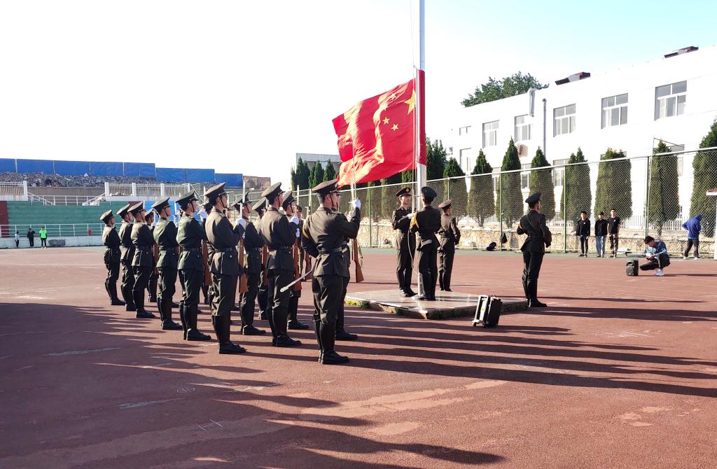 伴随着激昂的《义勇军进行曲》,五星红旗在歌声中冉冉升起,迎着东山操场的缕缕晨光,激发起同学们心头的爱国情怀与澎湃热血。