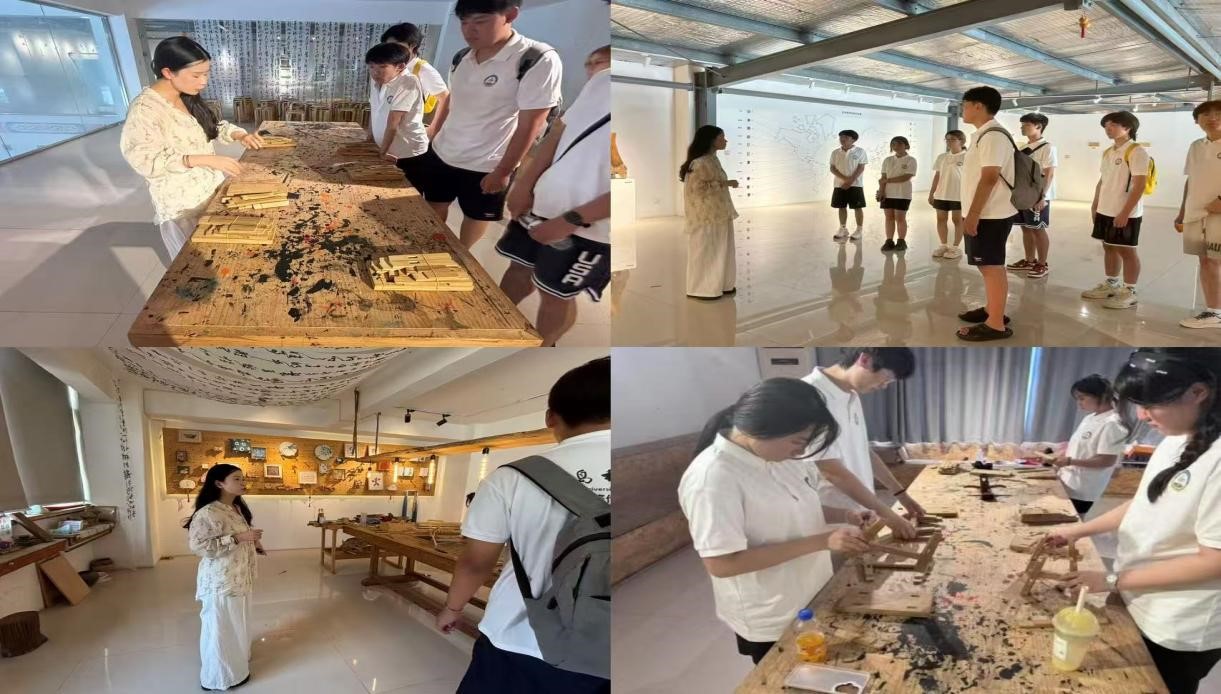 “务实致用”思想的相融之道。随后,成员们分组参与榫卯小板凳制作实践,在师傅指导下完成测量、切割、拼接等全流程工艺,感受传统技艺的精妙与匠心。