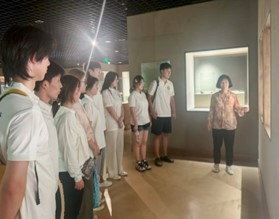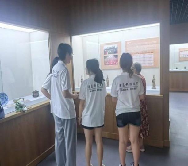 随后,实践团走进曲阜市博物馆,围绕儒家文化、曲阜历史、文物考古三大展区开展深度研学。在儒家文化专题展,成员们借青铜器、竹简等文物追溯鲁文化演进历程;在古代器物展区,研究春秋战国时期曲阜器具制作工艺,探讨手工业与儒家“务实致用”思想的关联;在文创区,调研本地文创产品设计理念,为校园鲁文化文创研发收集灵感素材。