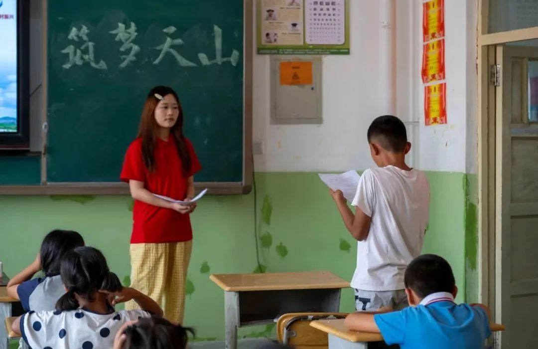 读书会结束后,卢星星为同学们带来了一场别开生面的“畅所欲言”座谈会。座谈会上,实践队队员们与小学生们畅谈,从山东的泰山云海、孔孟故里的文化传承,到青岛的红瓦绿树、啤酒飘香,队员们用生动的故事和鲜活的图片视频,让孩子们沉浸式感受齐鲁大地的风土人情与深厚文化底蕴。“知识是翅膀,能带你飞向更远的地方。”队员们结合自身经历,鼓励孩子们珍惜学习时光,努力汲取知识养分。