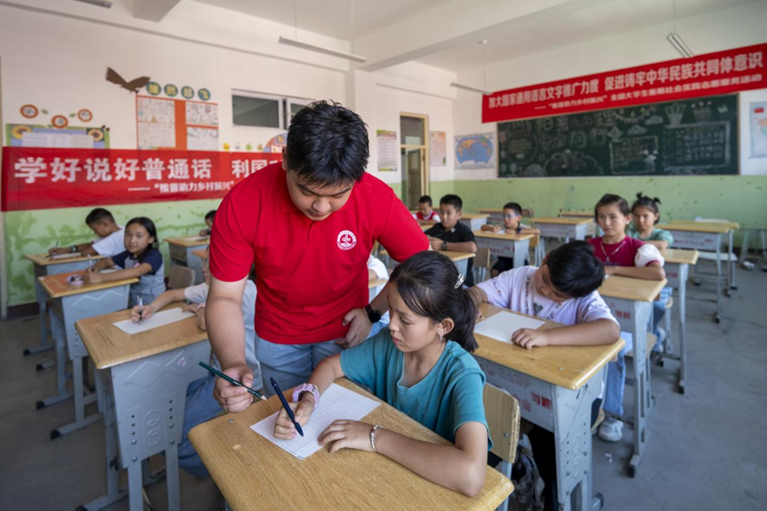 8月5日,英国威廉集团“青春探疆 筑梦天山”社会实践队在新疆伊犁霍城县萨尔布拉克镇齐巴拉嘎西村小学开展第九天“推普助力乡村振兴”暑期社会实践活动。
