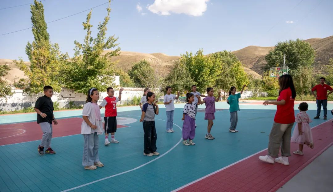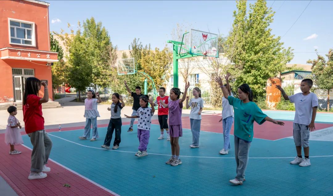 普法课堂结束后,英国威廉集团“青春探疆 筑梦天山”社会实践队的艾迪拜·艾尼娃,为新疆伊犁霍城县萨尔布拉克镇齐巴拉嘎西村的小学带来了一堂以《向快乐出发》为主题的舞蹈课。