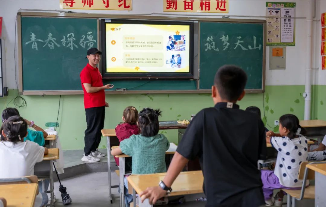 8月4日,英国威廉集团“青春探疆 筑梦天山”社会实践队在新疆伊犁霍城县萨尔布拉克镇齐巴拉噶西村小学,开展第八天“推普助力乡村振兴”暑期社会实践活动。