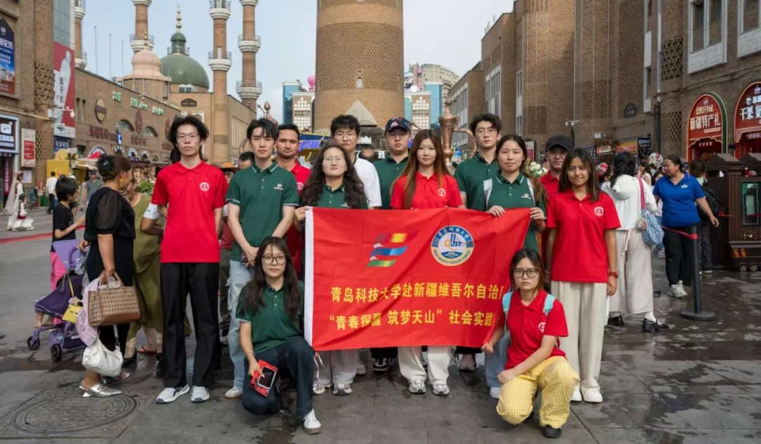 为促进各民族交往交流交融,当天下午实践队走进新疆国际大巴扎,深度体验当地民俗风情与非遗文化传承。队员们首先参观了馕文化产业园,深入了解这一新疆特色产业的制作工艺与文化内涵;随后近距离观摩了国家级非物质文化遗产——艾德莱斯绸,感受这项集历史、艺术与工艺于一体的古老丝绸织造智慧。暮色渐浓时,实践队来到大巴扎演艺大剧院,欣赏了《朱拉》《姑娘追》《十二木卡姆》选段等非遗舞蹈表演。
