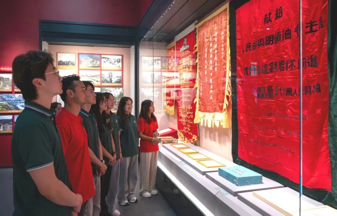 随着实践队员深入展馆,走进视角的是《革命史展厅》,该展厅系统展示了中国共产党在新疆的百年奋斗历程,分为“开天辟地”“改天换地”“翻天覆地”“惊天动地”四个部分,重点呈现了党领导新疆各族人民从解放到现代化建设取得的成就。队员们在一系列的革命展品和图片中,感受中国共产党在不同历史阶段为建设新疆挥洒热血的史实和对新疆各方面发展的亲切关怀,进一步认识中华民族共同体历史、中华民族多元一体格局,铸牢中华民族共同体意识。