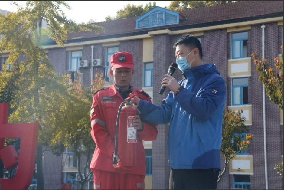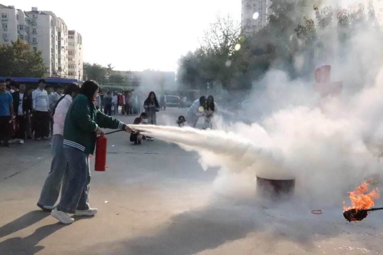 演练结束后,仇立峰从日常生活出发,普及消防安全相关知识,介绍如何防范火灾隐患以及火灾发生时如何逃生自救,并重点讲解了干粉灭火器的正确使用技巧和注意事项。讲解结束后,同学们在老师的指导下分组进行实操,切实增强防火灭火实践能力。