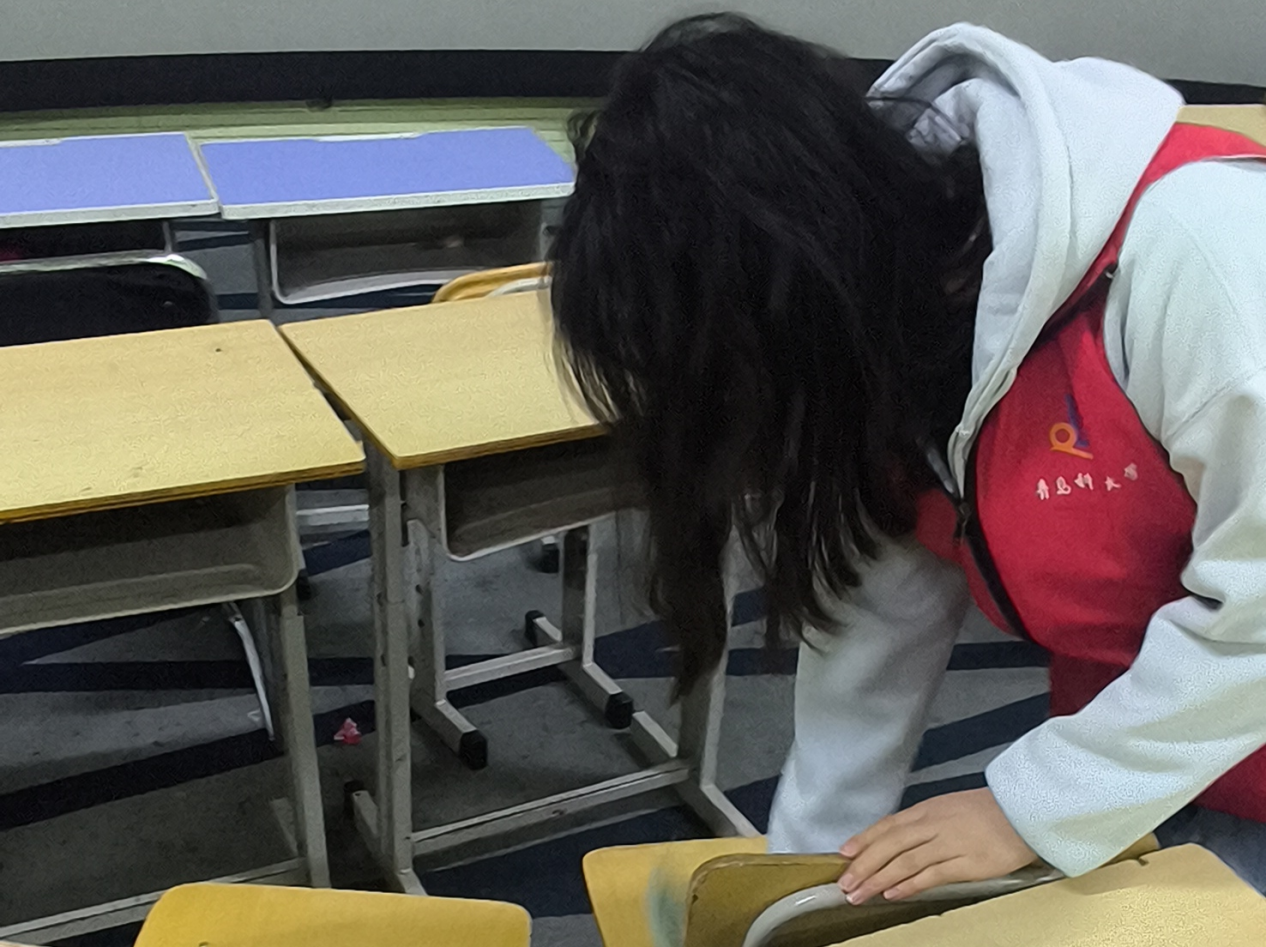 另一组则为环境保障组,志愿者们按区域分工,细致清扫、消毒活动场地与教学区域,同时对教具、玩具、生活用品等各类物品进行分类整理、规范摆放,用双手打造整洁有序、安全舒适的康复环境,为特殊儿童的日常活动与康复训练筑牢环境保障。