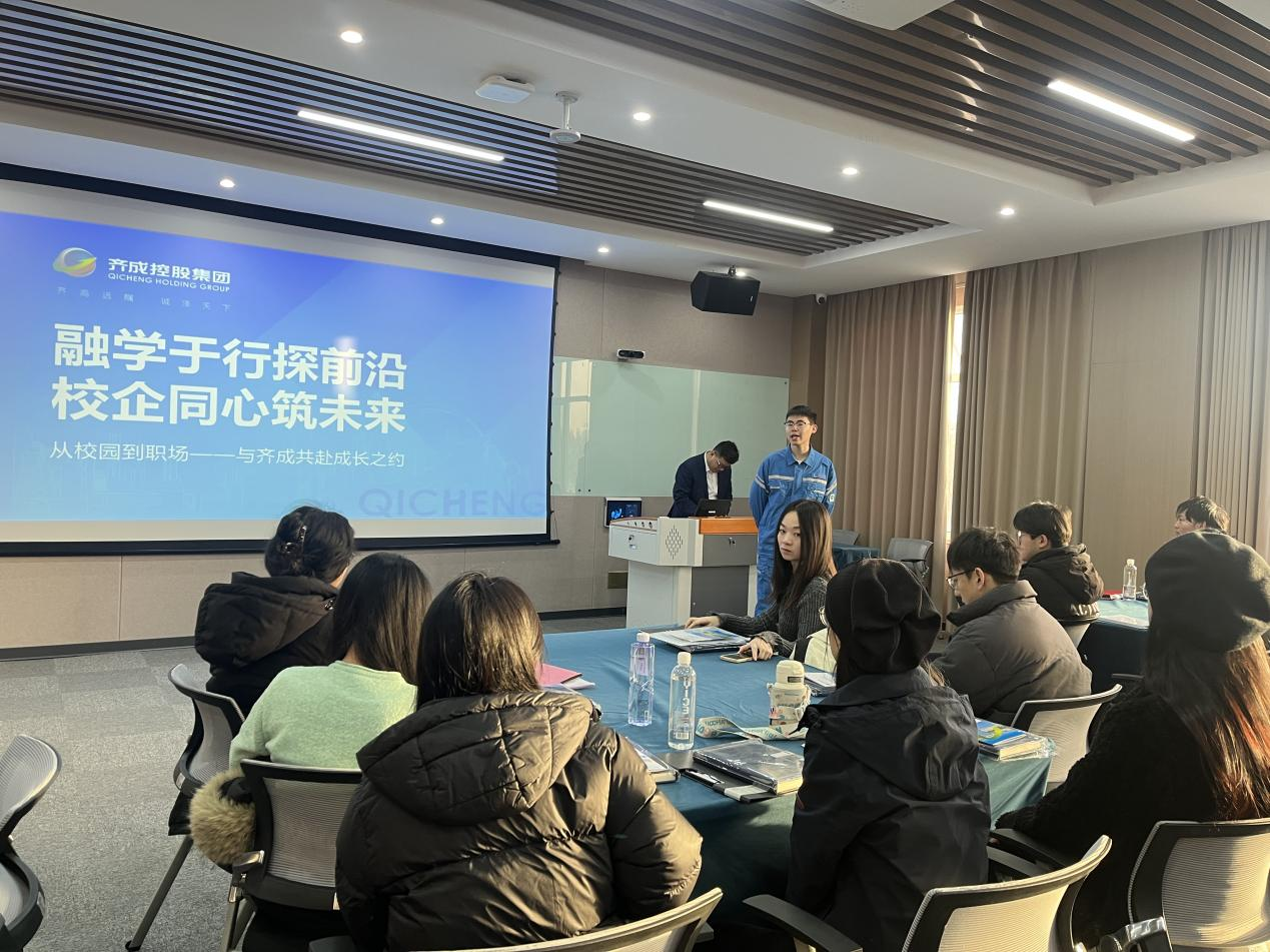 环境学院师生先后参观了企业现代化展厅、智能化生产厂区及员工生活区。通过企业详细地讲解,毕业生们对齐成控股集团的发展规模与行业定位形成了更清晰的认知。次日,师生深入企业核心生产装置区,企业技术骨干现场讲解工艺流程与安全规范。随后,双方围绕企业招聘需求、岗位能力要求及职业晋升路径等关键内容展开深度交流,为毕业生答疑解惑。座谈会上,企业负责人结合行业趋势,详细介绍了企业文化、招聘计划与人才培养体系,强调对创新能力和实践技能的重视。企业校友代表与毕业生深入交流,分享了他们在企业的成长经历和工作经验,为毕业生们提供了实践指引。交流结束后,企业组织了分组面试。