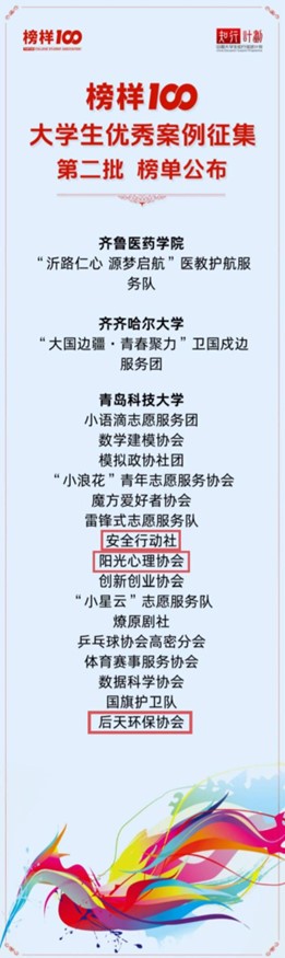 近日,2025年“榜样100”大学生优秀案例榜单正式公布,环境学院安全行动社、阳光心理协会、后天环保协会3支社团从全国376所高校的1320支入围团队中脱颖而出,获评优秀大学生社团案例。