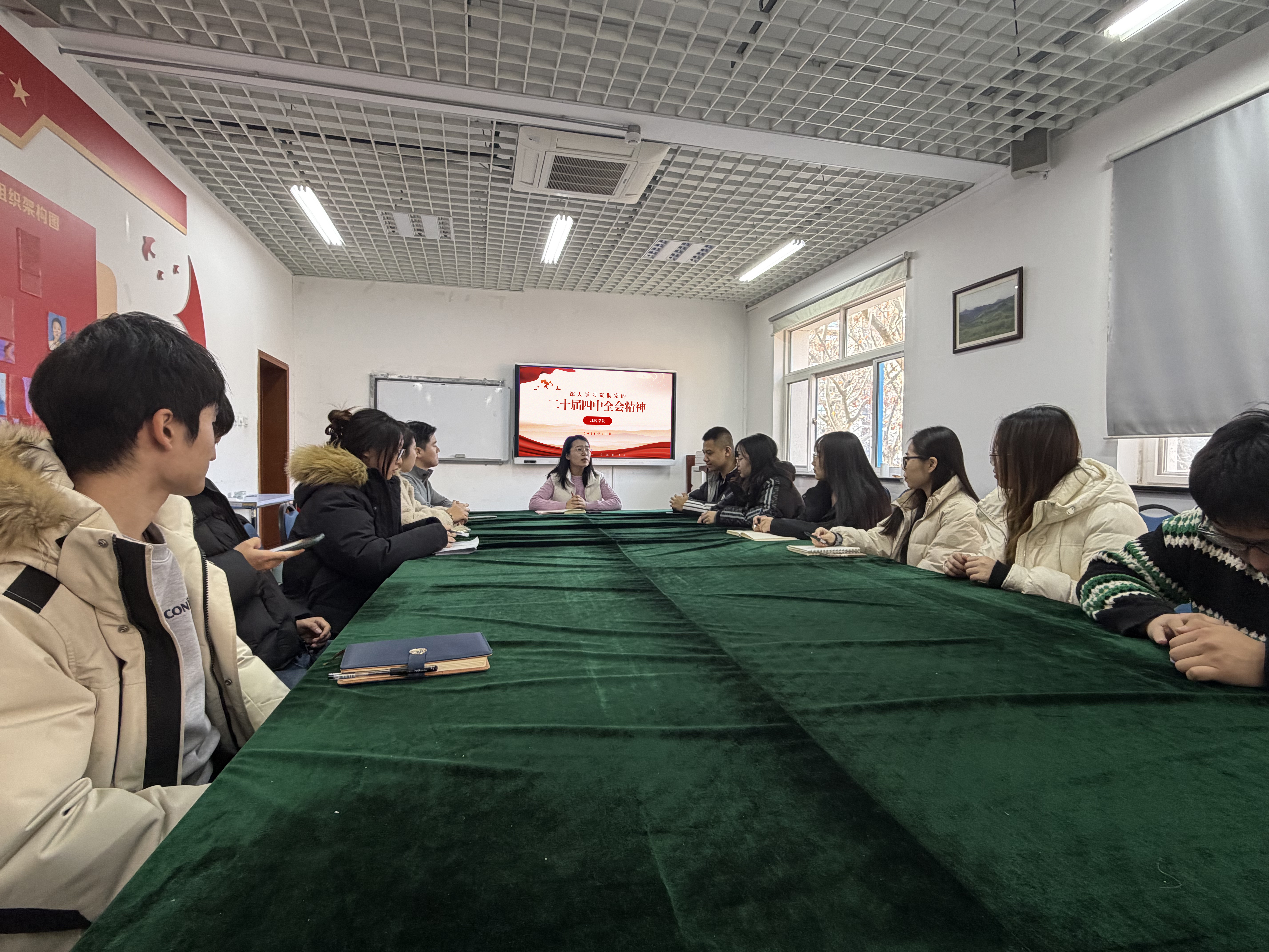 为深入学习贯彻党的二十届四中全会精神,切实引导全院团员青年的思想和行动统一到党中央决策部署上来,近日,环境学院团干部围绕党的二十届四中全会精神,讲授专题团课,学院各年级团支部书记、青马学员、学生骨干参加学习。