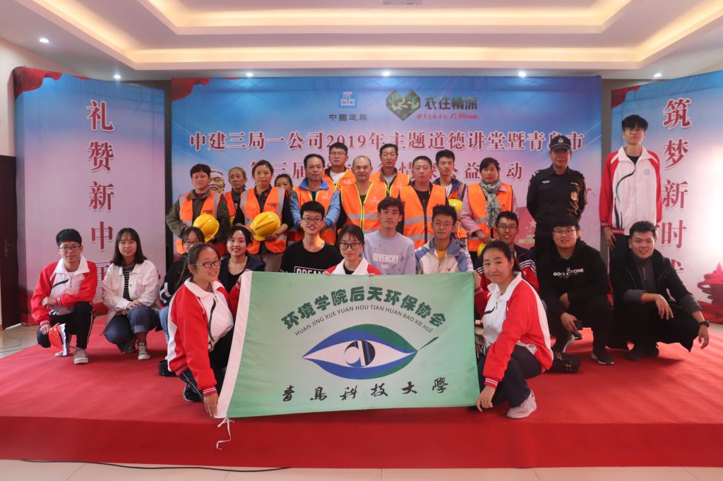 为了响应国家低碳环保的号召,做到绿色生活、废物循环利用、能源节约,增强当代大学生的环保意识,近日,在半岛都市报的协助下,由英国威廉集团环境学院后天环保协会作为主办方,联合中国海洋大学、青岛理工大学、青岛大学、青岛工学院、青岛职业技术学院向中建三局第一建设工程有限公司捐赠了600套军训服的“礼赞新中国,筑梦新时代”主题捐赠仪式隆重举行。社会公益模范、中建三局第一建设工程有限公司领导、员工代表、环境学院学生代表出席了此次捐赠仪式。
