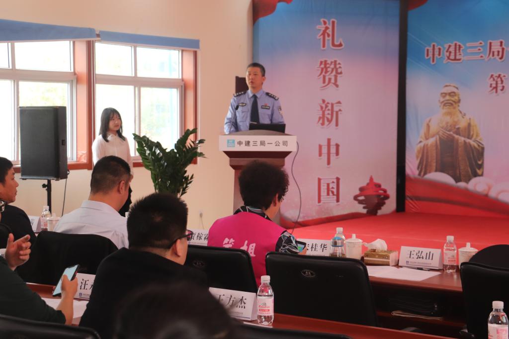 捐赠仪式上,中建三局一公司北方公司党委副书记兼工会主席江贤勇先生对中建三局一公司进行简单介绍,并致欢迎辞,对此次军训服回收、捐赠活动表示感谢与肯定。随后,全场起立共唱《公民道德歌》,社会公益模范宋桂华女士、王弘山先生分别发言,从自身出发讲述了帮助他人的真实经历,传达了个人的正能量理念。仪式上,青岛市团委青年发展部部长贾稼霖先生就当今绿色生活、循环利用的现状向同学们做了介绍,对同学们的爱心及环保意识表示了充分的肯定。