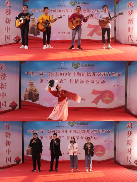 仪式最后,学生代表就学校、学院举办此次军训服捐赠活动的背景、初衷、规模进行了介绍,对辛勤努力的工人朋友们表示诚挚的敬意和祝福,希望通过此次活动能够带给工人朋友们丝丝温暖,呼吁更多人加入到公益活动中。环境学院学生还为捐赠仪式带来舞蹈、歌曲、吉他弹唱表演,现场观众也纷纷投入其中,精彩的表演引得现场掌声不断。