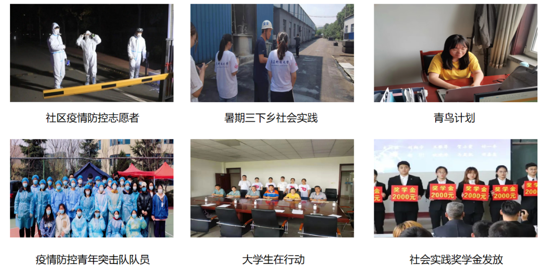 作为负责人带领团队成员两次参与“三下乡”社会实践,获校级“三下乡”优秀学生。积极响应团委号召,两次参加“青鸟计划”,进入政府部门,为民众办实事,助力社会基层建设,服务时长累计达300小时。疫情防控期间,在校担任党员青年突击队队员,在学校疫情防控核酸检测活动中志愿服务50 余小时,寒暑假期间作为社区青年志愿者,入户登记,设卡防控,为家乡疫情防控贡献青年力量。