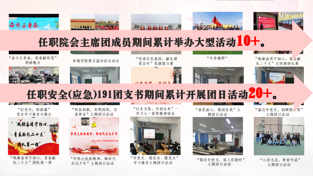 组织活动:学院迎新、迎新晚会、运动会等10余项大型活动,“忆党史,悟新篇”等各项主题团日活动,共计30余项。
